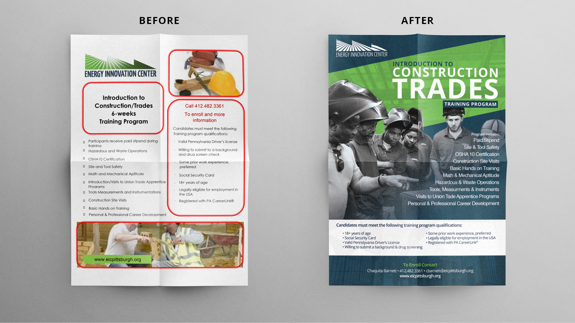 The EIC at this particular time was rolling out a few workforce development programs but wanted a flyer designs that aligned better with their brand presence.